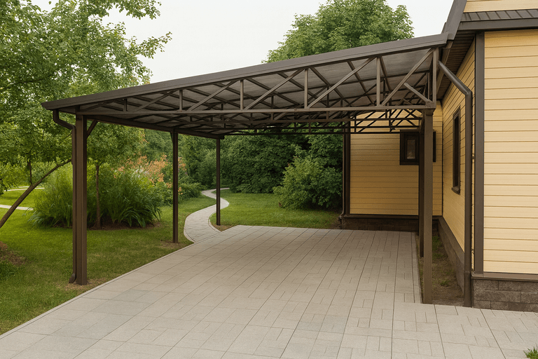Односкатный навес — это практичное решение для защиты автомобиля, зоны отдыха или хозпостройки от осадков и солнца. Благодаря своей конструкции он прост в реализации и отлично подходит для участков с ограниченным пространством. Мы реализуем односкатный навес с учетом ветровой и снеговой нагрузки, рельефа и пожеланий заказчика.