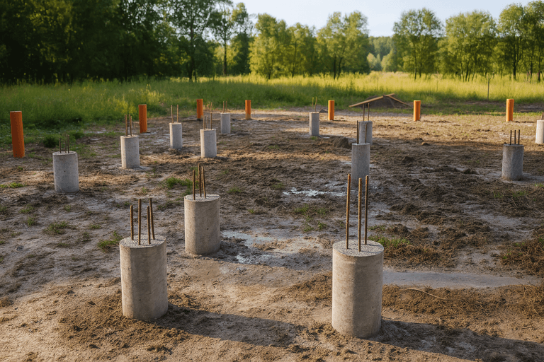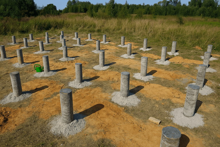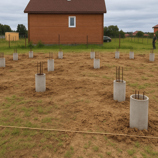 Технология фундамента ТИСЭ основана на бурении скважин с уширением основания и армировании с последующей заливкой бетоном. Такой фундамент считается выгодным решением для строительства домов различного размера, особенно в условиях слабонесущих или пучинистых грунтов. Мы предлагаем реализацию фундамента ТИСЭ под ключ с соблюдением всех норм СНиП и точной проработкой каждого этапа.